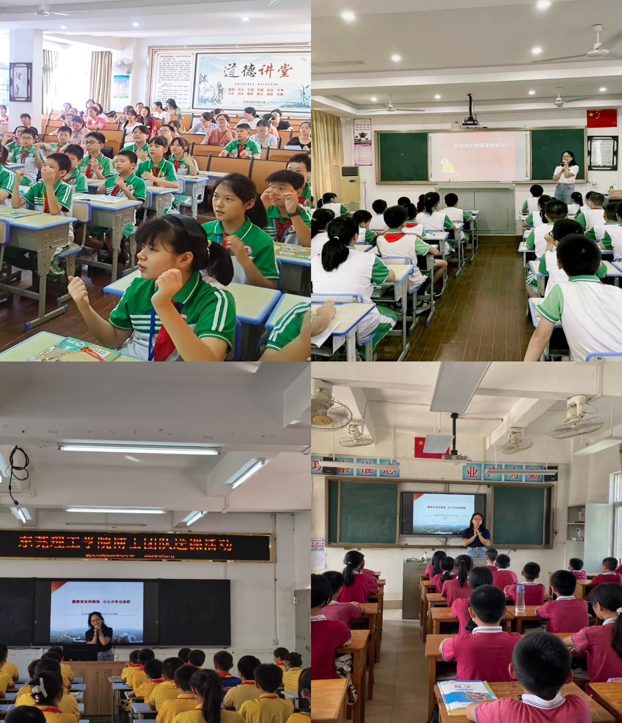 张洁以《国家安全你我他 小小少年出发吧》为题先后给韶关市浈江区风采实验学校小学部、浈江区吴礼和中心小学以及曲江区白土镇中心小学的孩子们授课,浈江区和曲江区部分《道德与法治》老师参与了现场听课,其他老师通过网络直播听课。张洁以“个人安全”为引由浅入深地导入“国家安全”,通过“中华民族上下五千年”发展图介绍了我国历史历程,通过广东省地图、中国地图、世界地图详细介绍了我国的现实情况,让学生在大历史观、大世界观、大格局观中更加立体地了解我们的国家。张洁还以家庭安全、班级安全等为例深入浅出地向学生讲解“维护国家安全人人有责 维护国家安全人人可为”的深刻道理,引导学生从节约用水、珍惜粮食、保护环境、保护文化、学好知识、锻炼身体等七个方面的小事做起,有效激发了学生维护国家安全的责任担当意识。