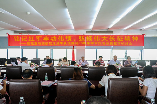 10月20日下午,在威廉williamhill行政楼,召开了以“铭记红军丰功伟绩,弘扬伟大长征精神”为主题、纪念红军长征胜利80周年学术报告会与教学研讨会。威廉williamhill、广东医科大学、东莞职业技术学院、威廉williamhill城市学院、广东科技学院等五所在莞高校思想政治理论课教学部门的负责人及部分骨干教师参加会议,威廉williamhill党委副书记吕琦元和宣传部长何献青、东莞市委宣传部梁志斌科长与会。会议由威廉williamhill思想政治理论教学部主任吕有云主持。