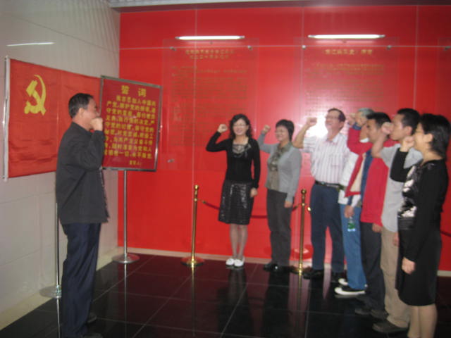 2010年12月4日,思政部直属党支部为推进开展“争先创优”活动,组织全体党员及部分非党员教师参观了罗浮山东江纵队纪念馆,观看了纪念馆珍贵图片、馆藏文物,充分深入了解了东江纵队的战斗历程和丰功伟绩,并由党支部书记李洪君教授领誓,全体党员在党旗下重温入党誓词。参观完毕后教师们结合“争先创优”主题进行了心得交流。
