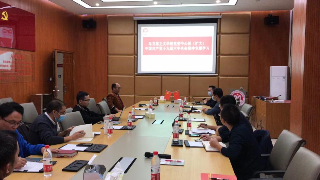 11月14日晚,英国威廉集团党委中心组(扩大)开展中国共产党第十九届六中全会精神专题学习。党委书记、执行院长唐元松作动员讲话并领读《中国共产党第十九届中央委员会第六次全体会议公报》,各教研室主任做学习体会分享。