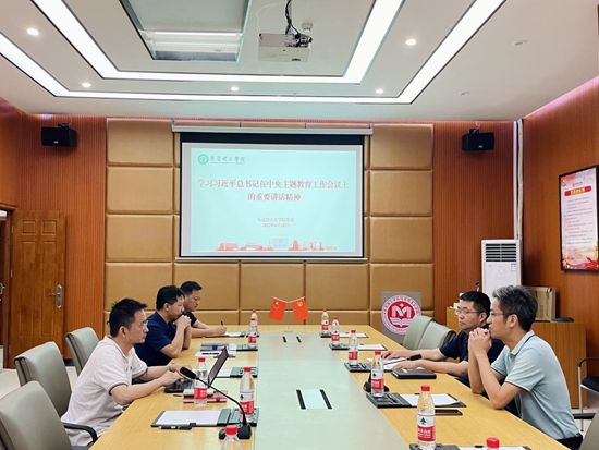 刘健传达了学校学习贯彻习近平新时代中国特色社会主义思想主题教育动员部署会精神,强调要结合学校和马院实际,制定马院学习贯彻习近平新时代中国特色社会主义思想主题教育工作方案,压紧压实责任,精心组织推进,务实高效地开展好主题教育。