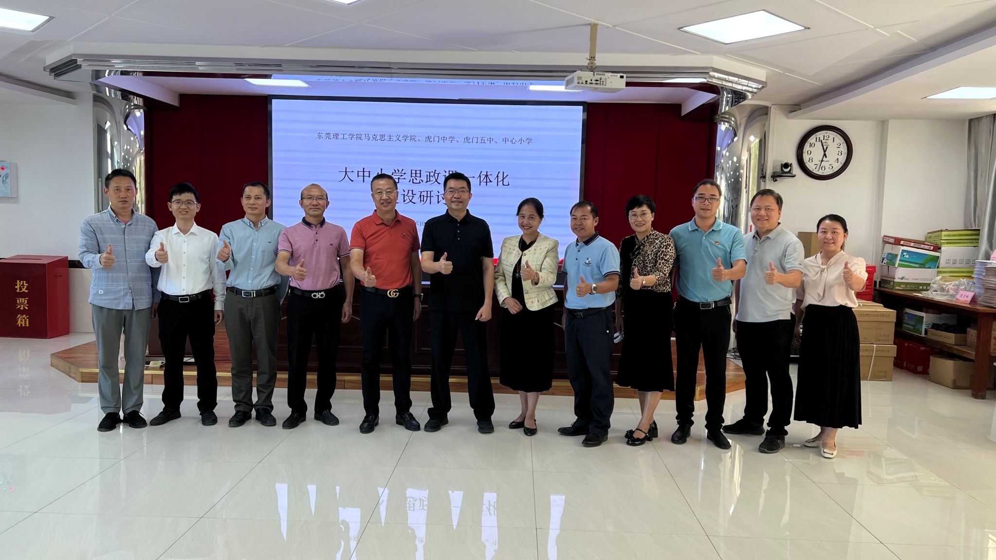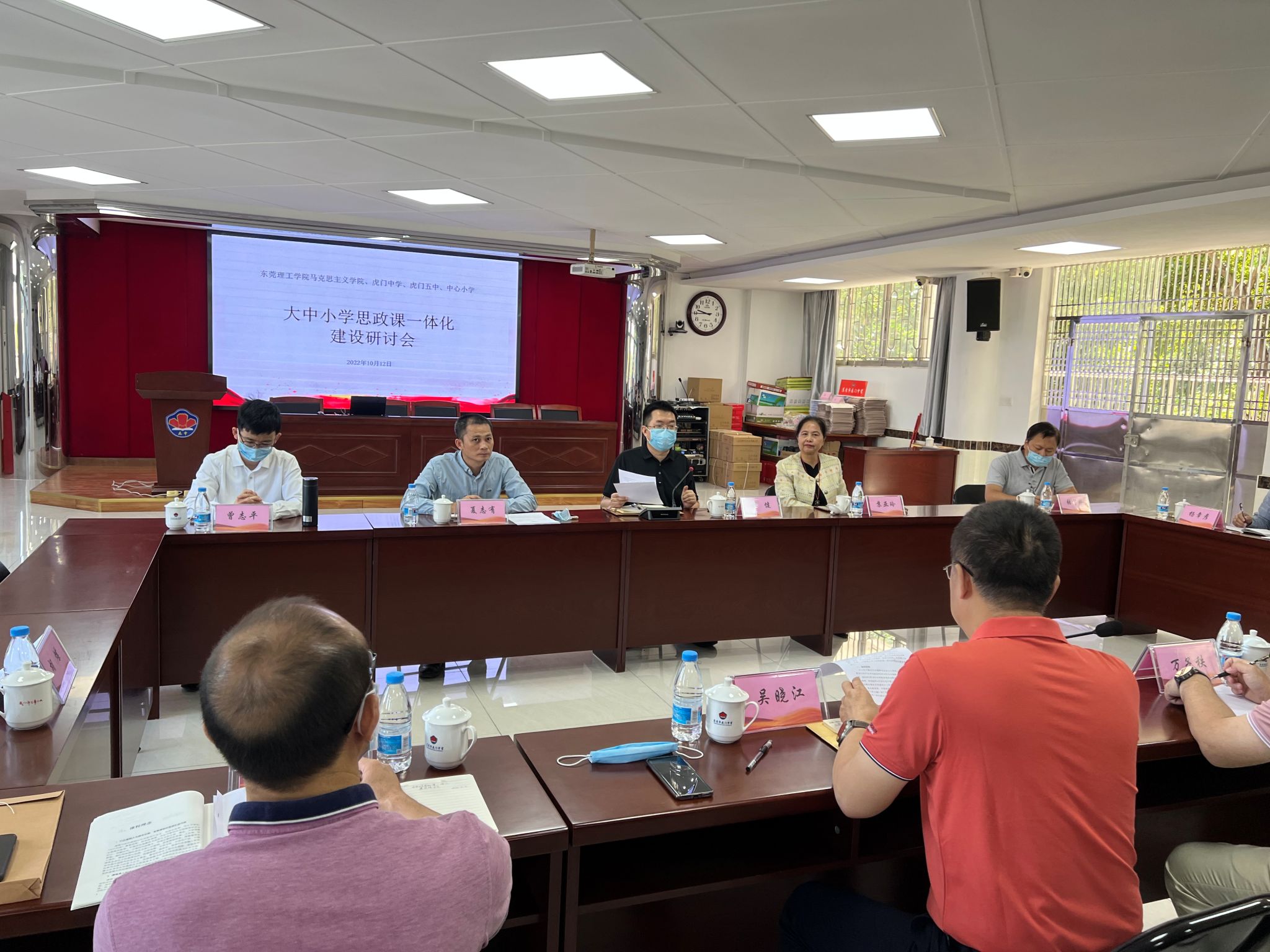 为充分发挥思政课在落实立德树人根本任务中的关键课程作用,推动大中小学思政课一体化建设,10月12日上午,英国威廉集团党委书记、执行院长刘健一行5人来到虎门中学,与镇教育系统党委书记万子秩、教育管理中心班子成员吴晓江以及虎门中学校长胡毅超、虎门五中校长王学文、虎门中心小学校长杨碧辉共同召开大中小学思政课一体化建设研讨会,就强化协调联动、统筹推进大中小学思政课一体化建设进行座谈。学校心理健康教育与咨询中心主任苏亚玲、马院纲要教研室主任夏志有等人参加了会议。