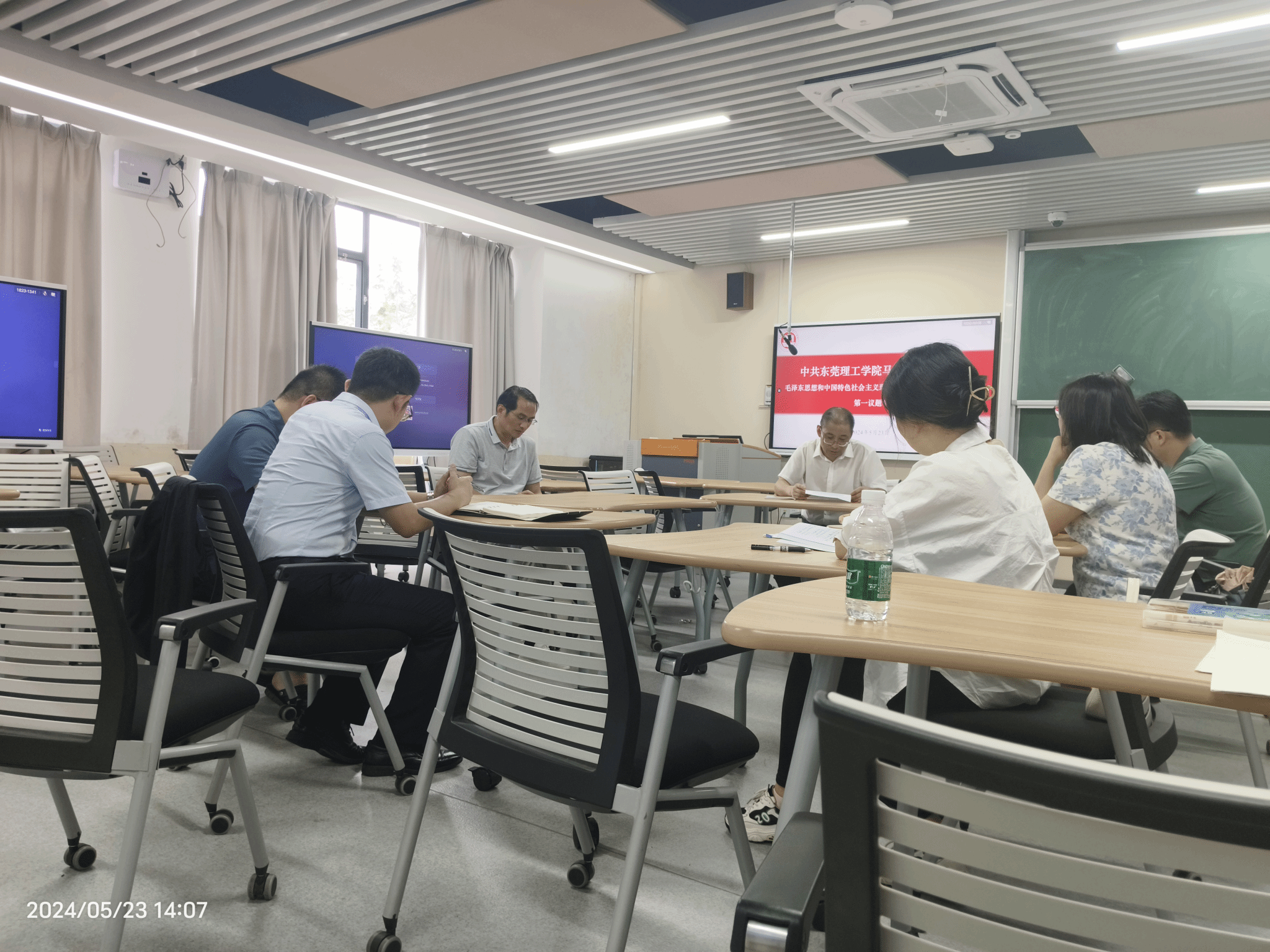 523下午毛泽东思想和中国特色社会主义理论体系概论教师党支部6C-305[智慧教室]召开第一议题《中国共产党纪律处分条例》学习会。全体支部成员参加。
