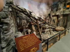 纪念馆的复原场景展示出:残垣断壁间,焦黑砖墙嵌着弹片,断梁旁斜插半截锈大刀——这是游击队员突围所遗。碎瓦堆里,弹壳缠绷带,陶罐残片上炭笔伏击路线犹为清晰。硝烟中星火明灭,是百姓烽火或战士枪口的火焰。轰鸣混着“跟鬼子拼了”的呐喊。照片墙上,年轻战士面带坚定笑容,有的才十几岁便肩负卫国重任。望着他们冲锋的身影,似闻震天呐喊,感受不屈斗志。