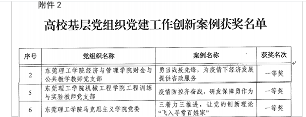 近日,东莞市委教育工委公布优秀主题党日等评选活动获奖名单,我院参赛作品在高校组中斩获佳绩。其中,获得党建工作创新案例一等奖1项和“微党课”大赛一等奖2项。